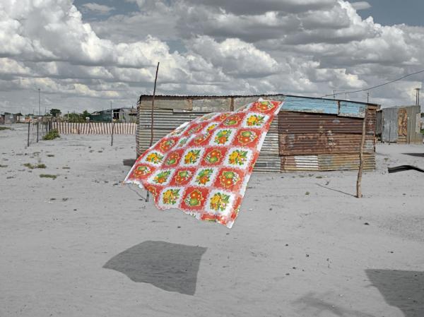 Graeme Williams a démarré sa carrière de photojournaliste à la fin des années 80, au plus fort de la lutte antiapartheid. Depuis, il n’a cessé d’accompagner son pays dans ses douleurs et ses joies, guettant les signes de changement, révélant une dure réalité sociale. A sa manière, toujours subtile. Témoin ce cliché pris dans un township de la région désertique de Kimberley : la pauvreté dans toute son aridité, mais aussi la propreté et la couleur éclatante de cette nappe comme un étendard proclamant le non-renoncement d’une population qui garde foi en un avenir meilleur.